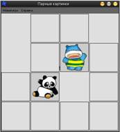 036. Парные картинки. Игра Парные картинки развивает внимание. Вот ее правила. Игровое поле разделено на клетки, за каждой из которых скрыта картинка. Картинка парные, т.к. на игровом поле есть две клетки, в которых находятся одинаковые картинки. В начае игры всеклетки «закрыты». Щелчек левой кнопкой мыши «открывает» клетку, в клетке появляется картинка. Теперь надо найти клетку, в которой находится такая же картинка, как и в открытой клетке. Щелчок по другой клетке открывает вторую картинку. Программа, реализующая игру Парные картинки, демонстрирует работу с графикой. В приведенной реализации игры все картинки квадратные и находятся в одном файле. Это позволило сделать программу «интелектуальной2 – размер игрового поля (количество клеток по горизонтали и ертикали) определяется количеством картинок в файле: зная высоту и ширину картинки в файле, программа вычисляет размер и количество картинок и устанавливает соответствующий размер игрового поля. Таймер используется для организации задержки исчезновения открытых клеток, в которых находятся одинаковые картинки. |